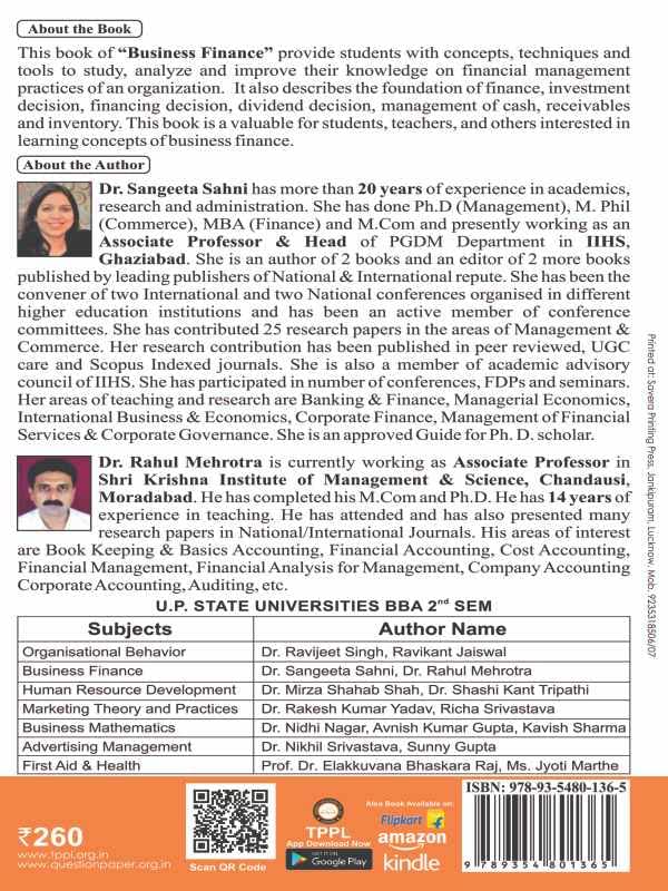 BBA Business Finance 2 semester(Group B)UP State common minimum syllabus