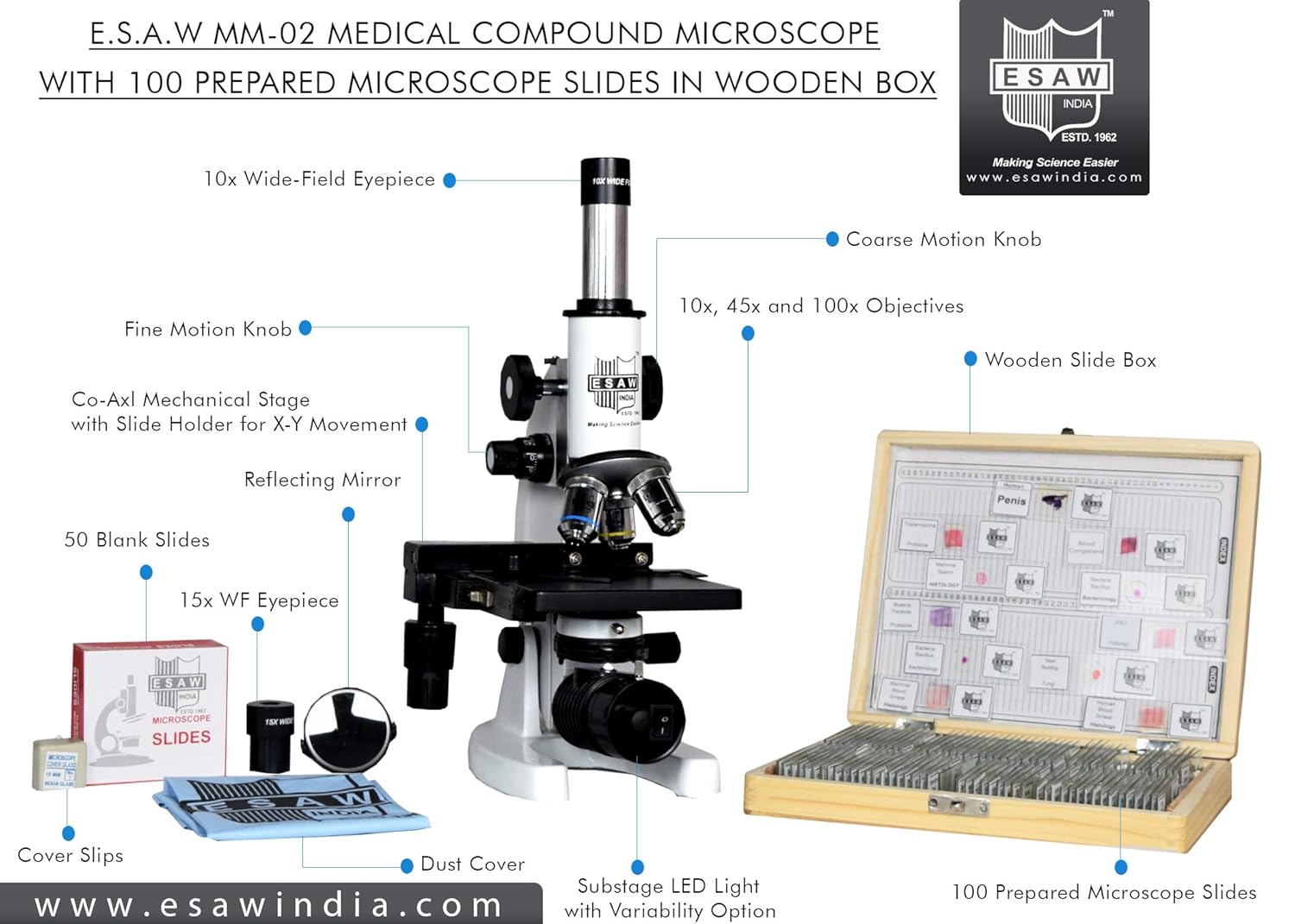 ESAW MM-02 Medical Microscope Kit with 100 Prepared Slides