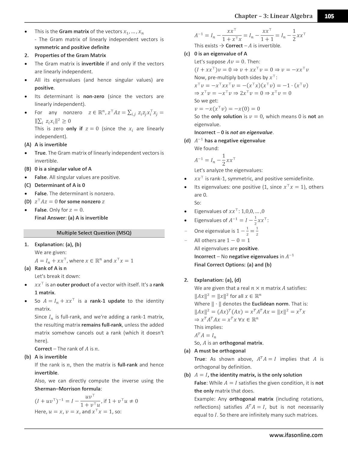 Previous Year Solved Questions are categorized into Multiple Choice Questions (MCQ), Multiple Select Questions (MSQ), and Numerical Answer Type (NAT) formats, reflecting the varied question styles found in the exam. Each solution is presented in a detailed, step-by- step format, clarifying not only the approach but also the underlying concepts and problem-solving strategies required to succeed in GATE.