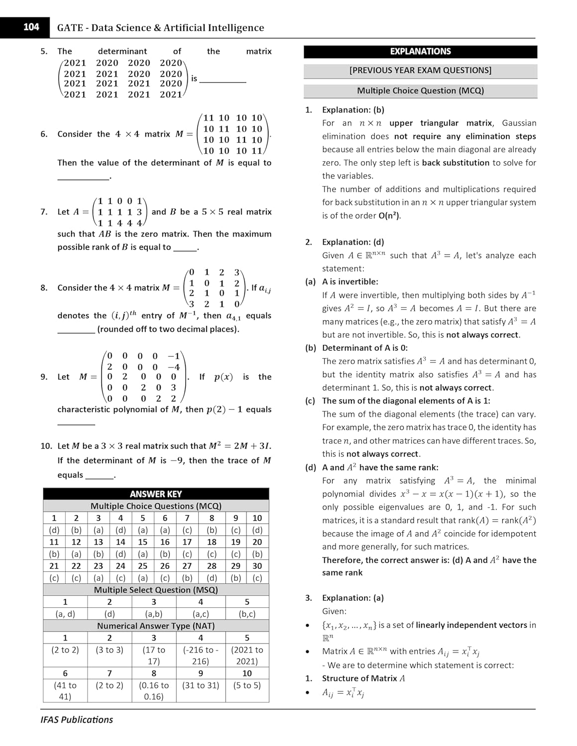 Updated GATE Data Science and AI previous year solved papers (2024 to 2025) & GATE Computer Science previous year solved papers (1996 to 2025) are included offering valuable insights into exam patterns and question types. Includes 1000+ solved practice questions & solved 5 mock test. Each chapter is subdivided into units for clear topic segmentation, with questions sorted year-wise to highlight the progression of concepts and formats over time.