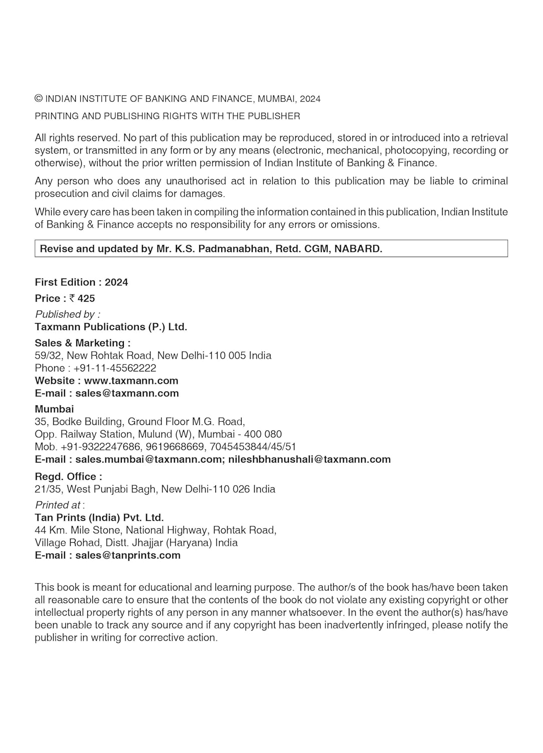 বর্তমান প্রকাশনা 2024 সংস্করণ, শ্রী কে এস পদ্মনাভন অবসরপ্রাপ্ত . সিজিএম-নাবার্ড দ্বারা সংশোধিত এবং আপডেট করা হয়েছে.