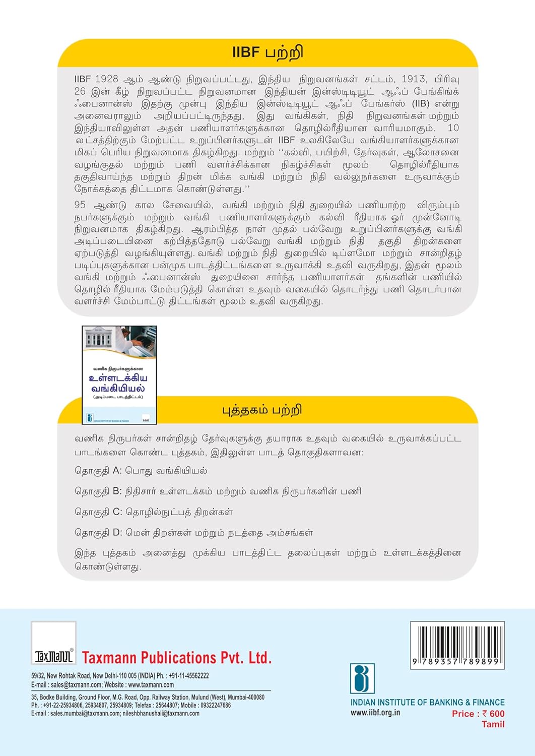 இந்த புத்தகத்தின் விரிவான உள்ளடக்கங்கள் பின்வருமாறு:தொகுதி A – பொது வங்கி