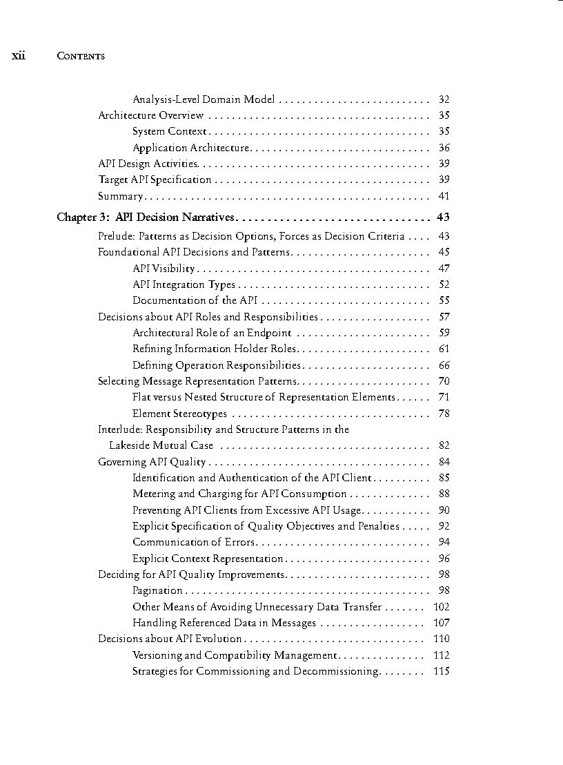 In Patterns for API Design: Simplifying Integration with Loosely Coupled Message Exchanges, five expert architects and developers cover the entire API lifecycle, from launching projects and establishing goals through defining requirements, elaborating designs, planning evolution, and creating useful documentation. They crystallize the collective knowledge of many practitioners into 44 API design patterns, consistently explained with context, pros and cons, conceptual solutions, and concrete examples. To make their pattern language accessible, they present a domain model, a running case study, decision narratives with pattern selection options and criteria, and walkthroughs of real-world projects applying the patterns in two different industries.