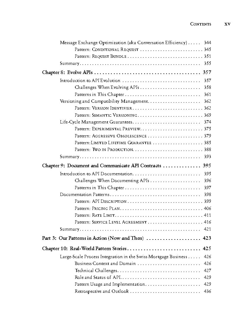 Identify and overcome API design challenges with patterns Size your endpoint types and operations adequately Design request and response messages and their representationsRefine your message design for quality Plan to evolve your APIs Document and communicate your API contracts Combine patterns to solve real-world problems and make the right tradeoffs