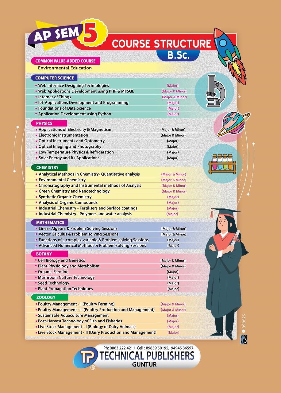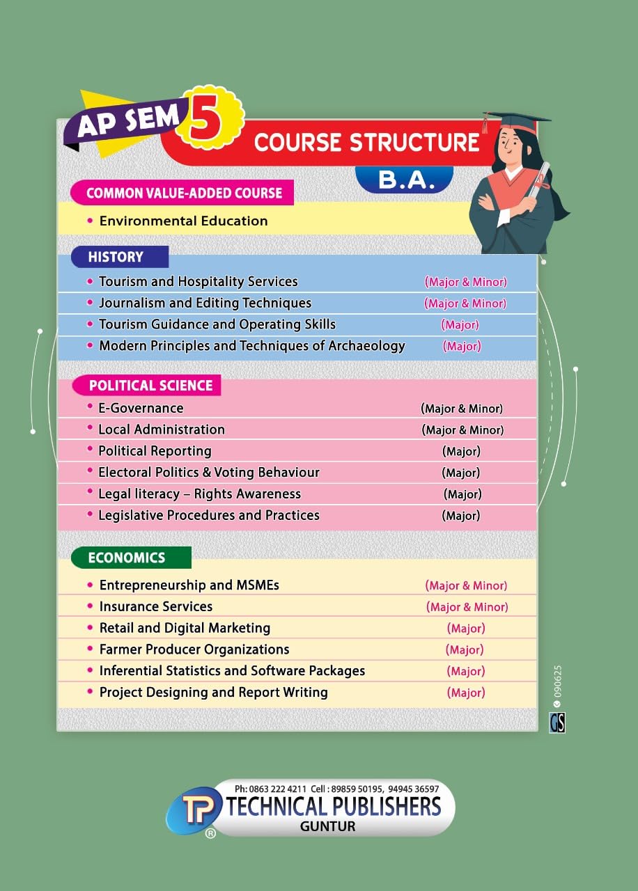 (1) This book is applicable to all universities in Andhra Pradesh; namely; Andhra university, BR Ambedkar University, Adikavi Nanayya University, Krishna University, Nagarjuna Univeristy, Andhra Kesari, Vikrama Simhapuri, Sri Venkateswara, Yogi Vemama, Sri Krishna Devaraya and Rayalaseema. (2) This book aligns with the syllabus from on and after 2025. (3) This book contains Model Papers to help you with the exam preparation. (4) This book is printed and published by Technical Publishers, Guntur. (5) Please note that the no.of pages mentioned here is an estimate, actual no.of pages may vary. (6) Feel free to contact us if you need any assistance with selecting the books or placing order. (7) The price shown on the book may vary from the price here on Amazon