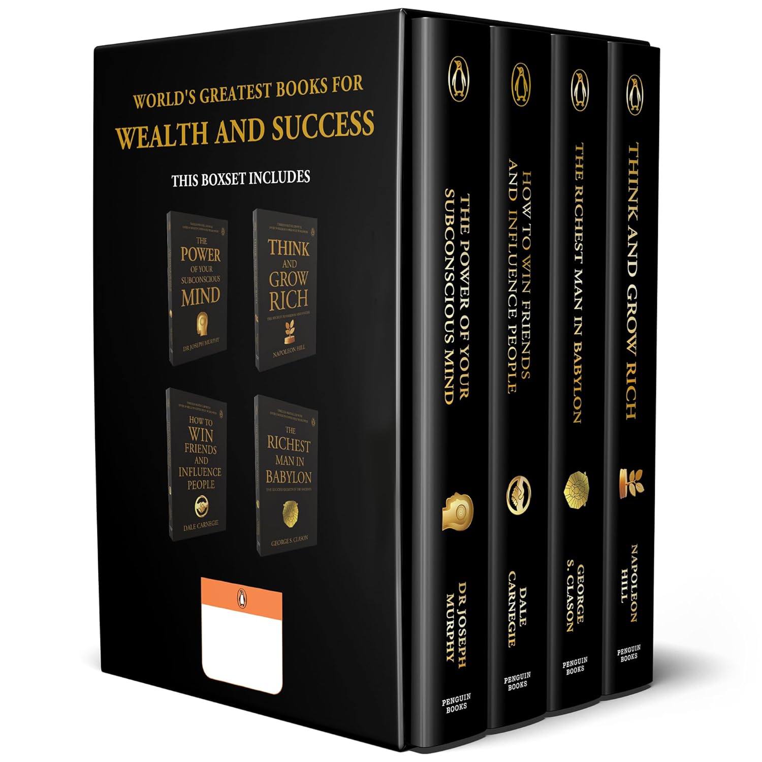 Includes four all-time classics on wealth, mindset, influence, and personal growthTimeless lessons from renowned authors like Napoleon Hill, Dale Carnegie, and moreInspiring real-world success stories that demonstrate practical applicationActionable techniques to improve communication, confidence, and decision-makingElegant gold foiling and premium paperback design make it perfect for gifting or collecting